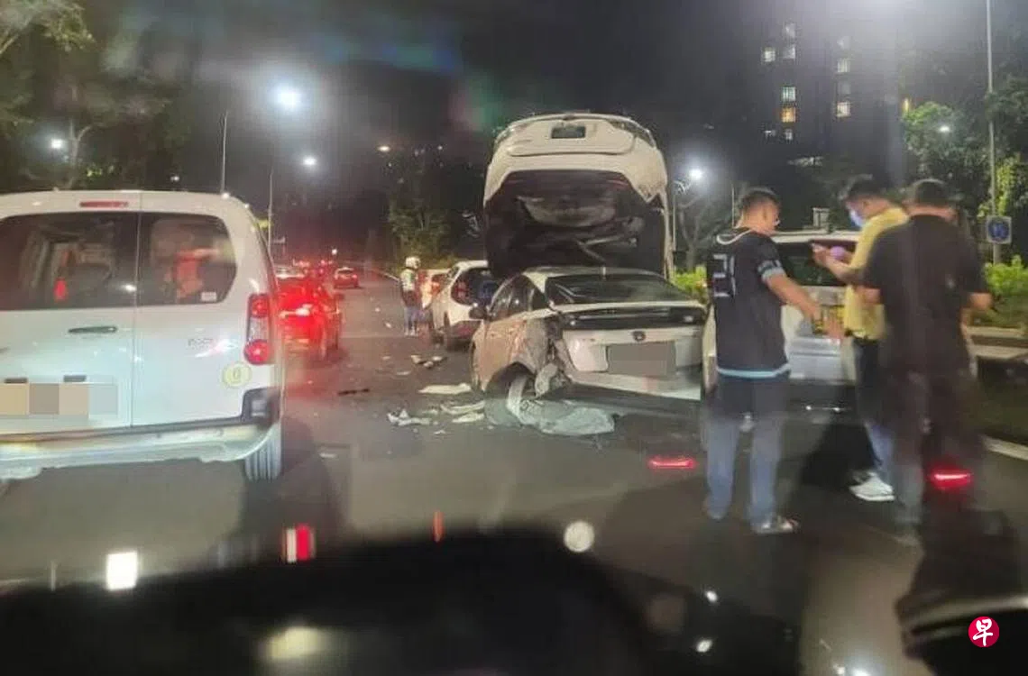 据《联合早报》了解,第一起车祸的38岁男汽车司机涉嫌酒驾,撞上一辆电单车。救援人员还未抵达现场前,后方车辆相信为了闪避车祸路段,酿成七车连撞的第二起车祸。