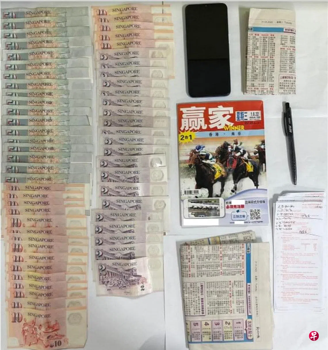 警方在执法行动中起获约1100元现金、一台手机及一台赌博用具,这些都将作为呈堂证物。