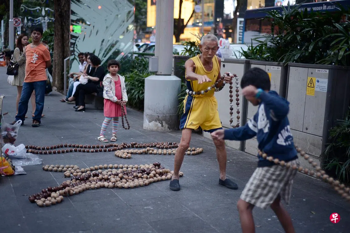 (早报讯)带给公众无数欢乐的乌节路街头艺人,“木珠呼拉圈阿伯”走了。