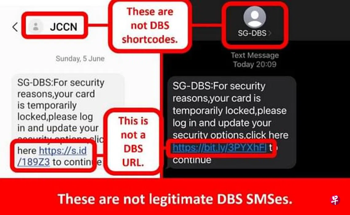 新加坡警方发文告指出,有公众近日收到来自“SG-DBS”或是“DBS-Notice”的陌生短信,声称他们的银行户头出现可疑或异常活动,因此户头暂遭冻结或暂停,受害者被要求点击链接进行身份验证。当受害者点击短信的链接后,被带到假冒的银行网页,输入用户名字及密码。登录页面后,受害者也被要求输入一次性密码等;直到他们的银行户头中出现不明转账后,才发现自己受骗。