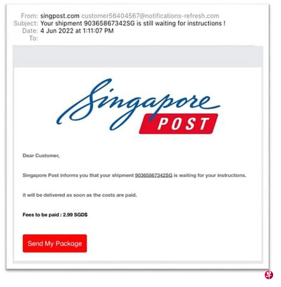 警方今天(6月11日)发文告指出,受害者一般会收到电邮或短信通知有包裹要递送给他们,通过点击信息中的链接了解详情。当受害者点击链接后,会被转至假的钓鱼网站,要求他们提供信用卡或借记卡资料、一次性密码等,直到银行卡出现未授权转账后,他们才得知受骗。