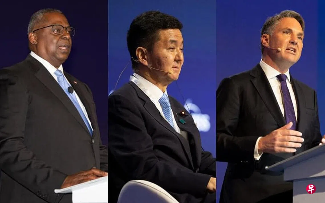 (早报讯)美国、日本、澳大利亚国防部长在香格里拉对话会场边发表三边联合声明,表达对中国东海和南中国海局势的关注;他们也承诺为太平洋岛国提供更多援助,以建设安全、繁荣的太平洋地区。