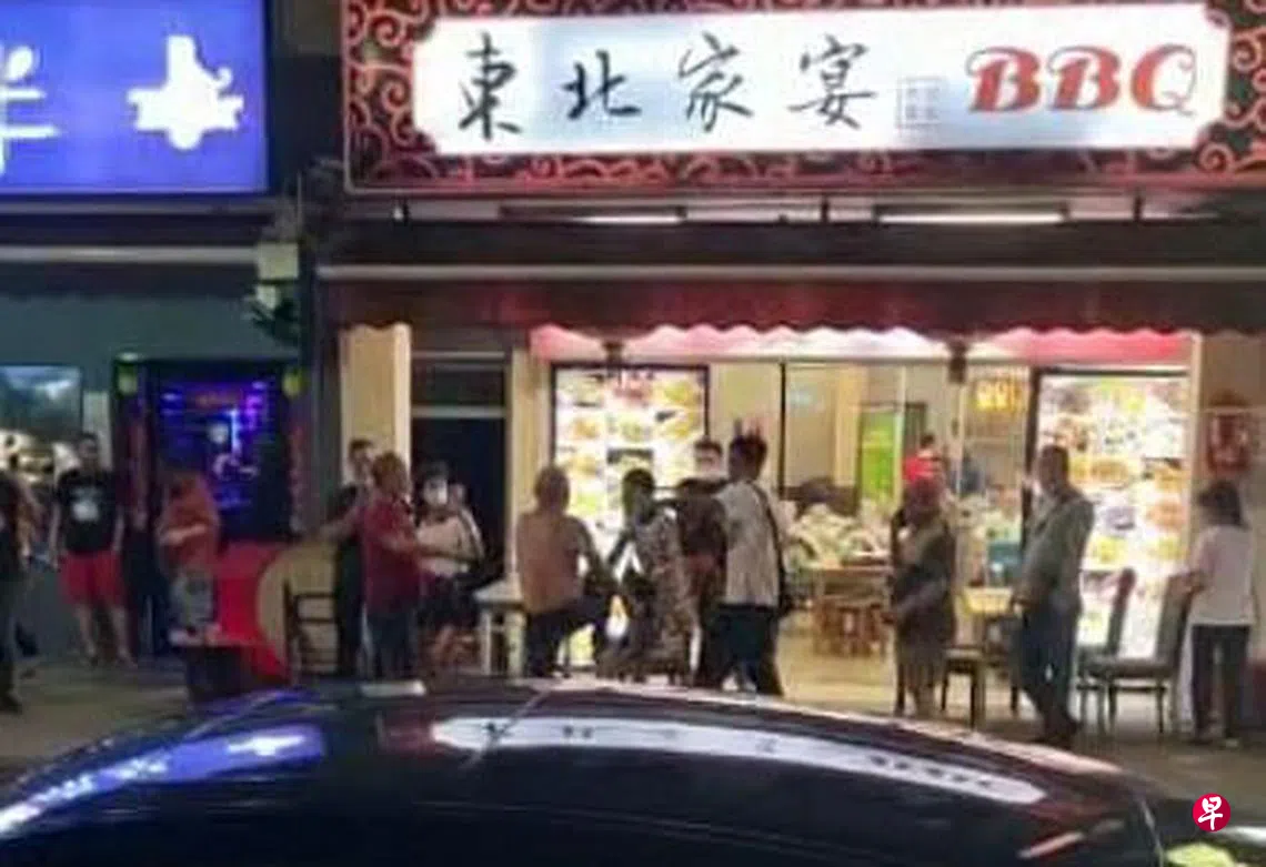 (早报讯)光头叔打着赤膊发飙,餐馆外挥椅、飞腿、打人,镇暴部队到场。