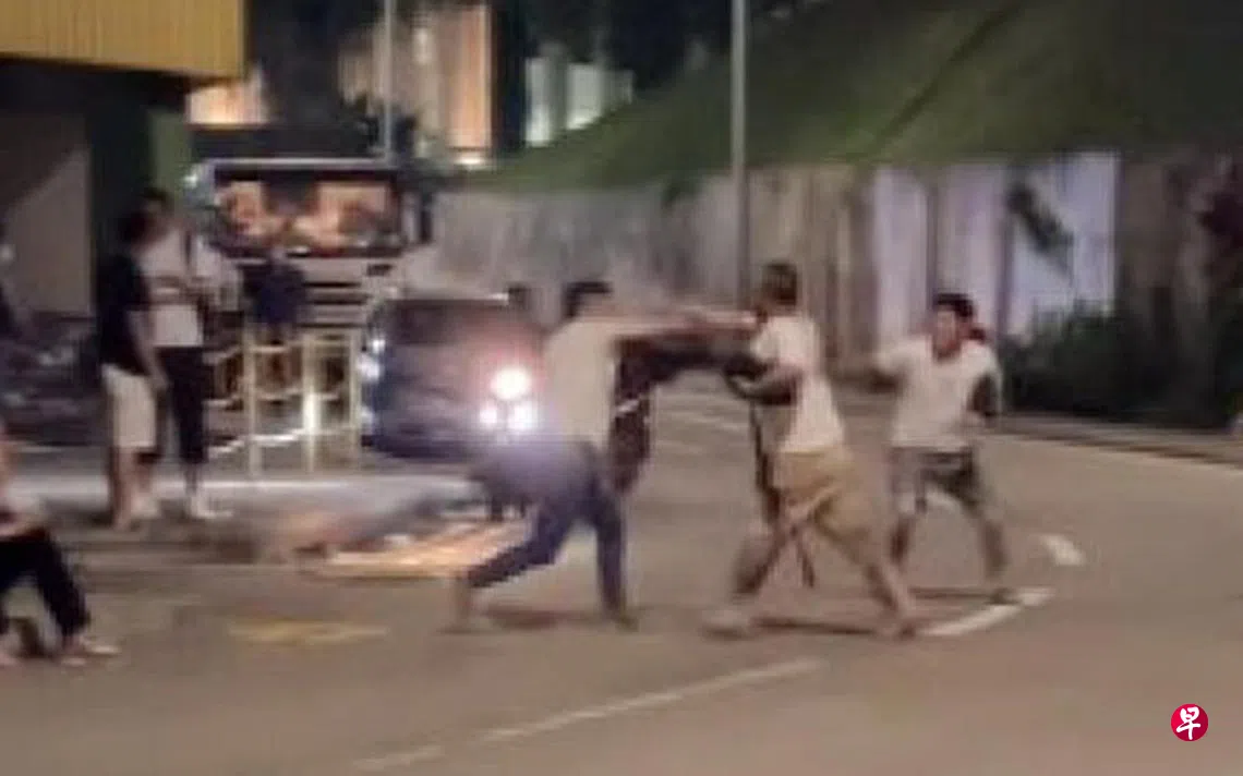 面簿近日流传一段长约41秒的视频,画面显示,现场有10多名男女,其中两名身穿白色上衣的男子起了争执,其中一人冲向另一人,并挥拳揍向对方的肩膀,导致他跌倒在地。