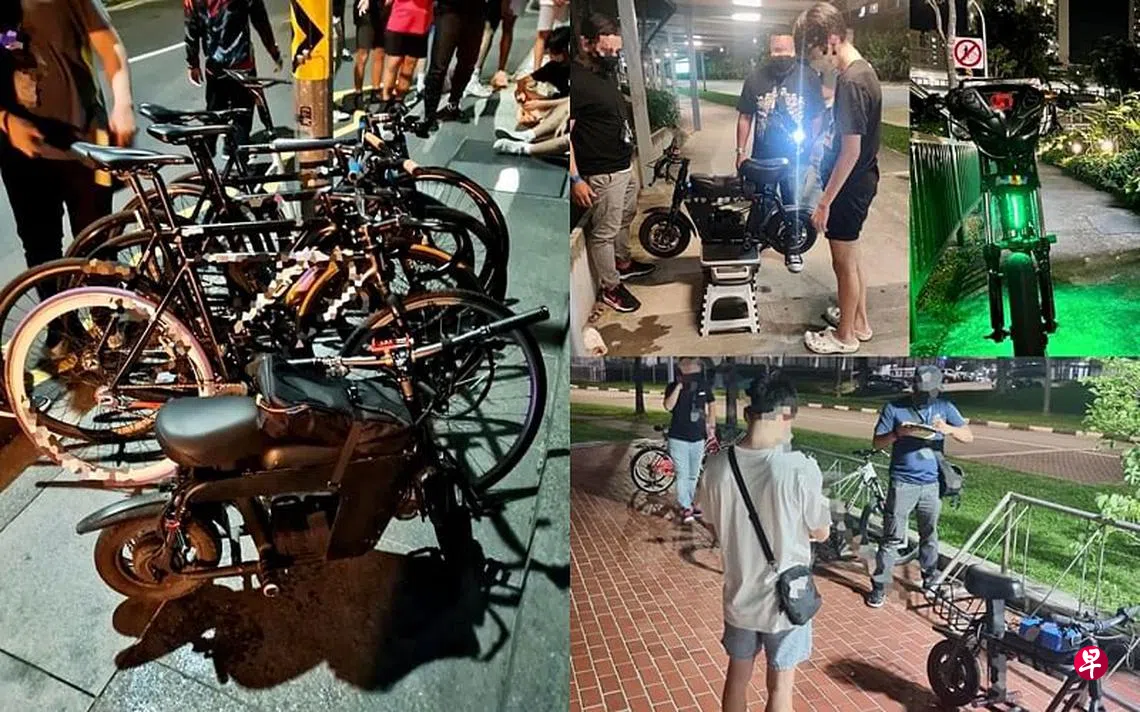 陆交局星期天(6月26日)在面簿贴文说,过去一周,执法人员在淡滨尼、蔡厝港、义顺、裕廊、红山和后港等全岛20多个地区展开执法行动。违例者当中,有好些用户在人行道上骑电动脚踏车或踏板车,也有一些人在马路上骑踏板车。一些骑士的脚踏车也没有安装刹车器,这些都属违例行为。