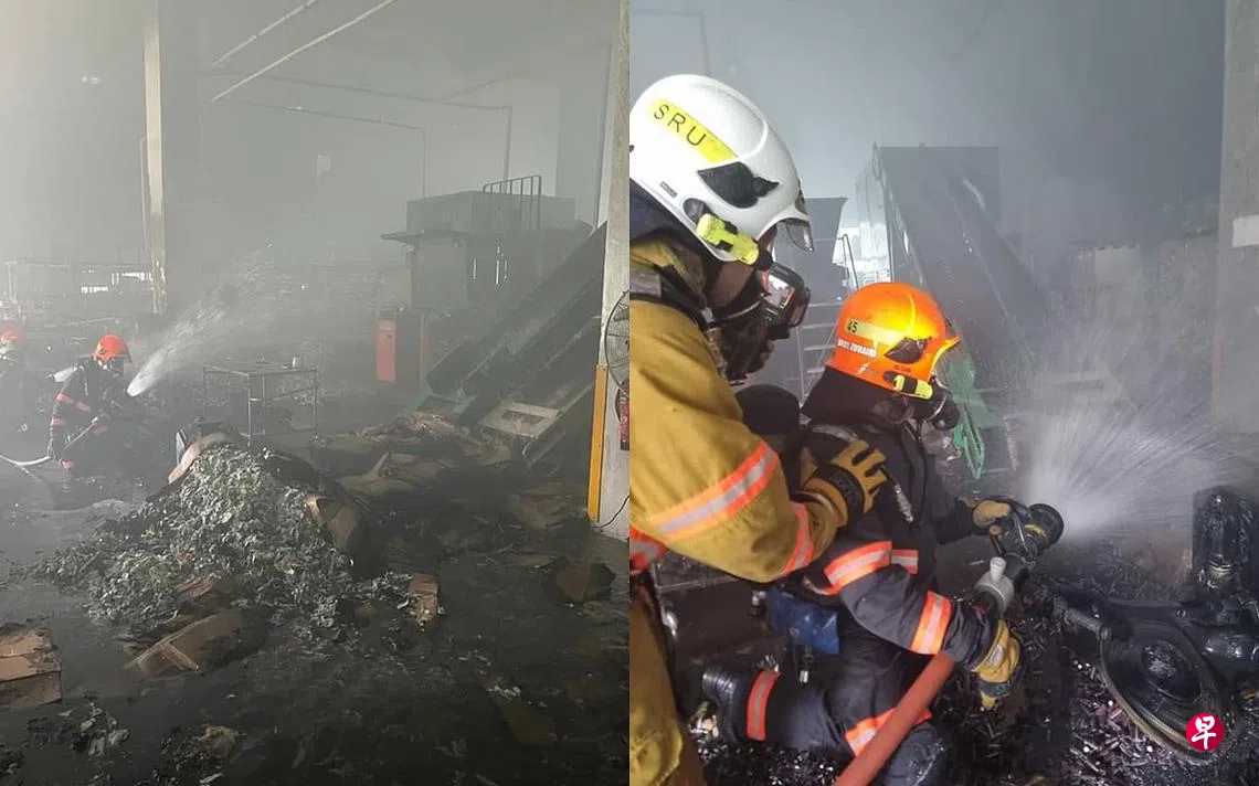 这起火患发生在星期一(7月4日)中午12时25分许,地点是大士景广场(Tuas View Square)三楼的一个废品循环工场。