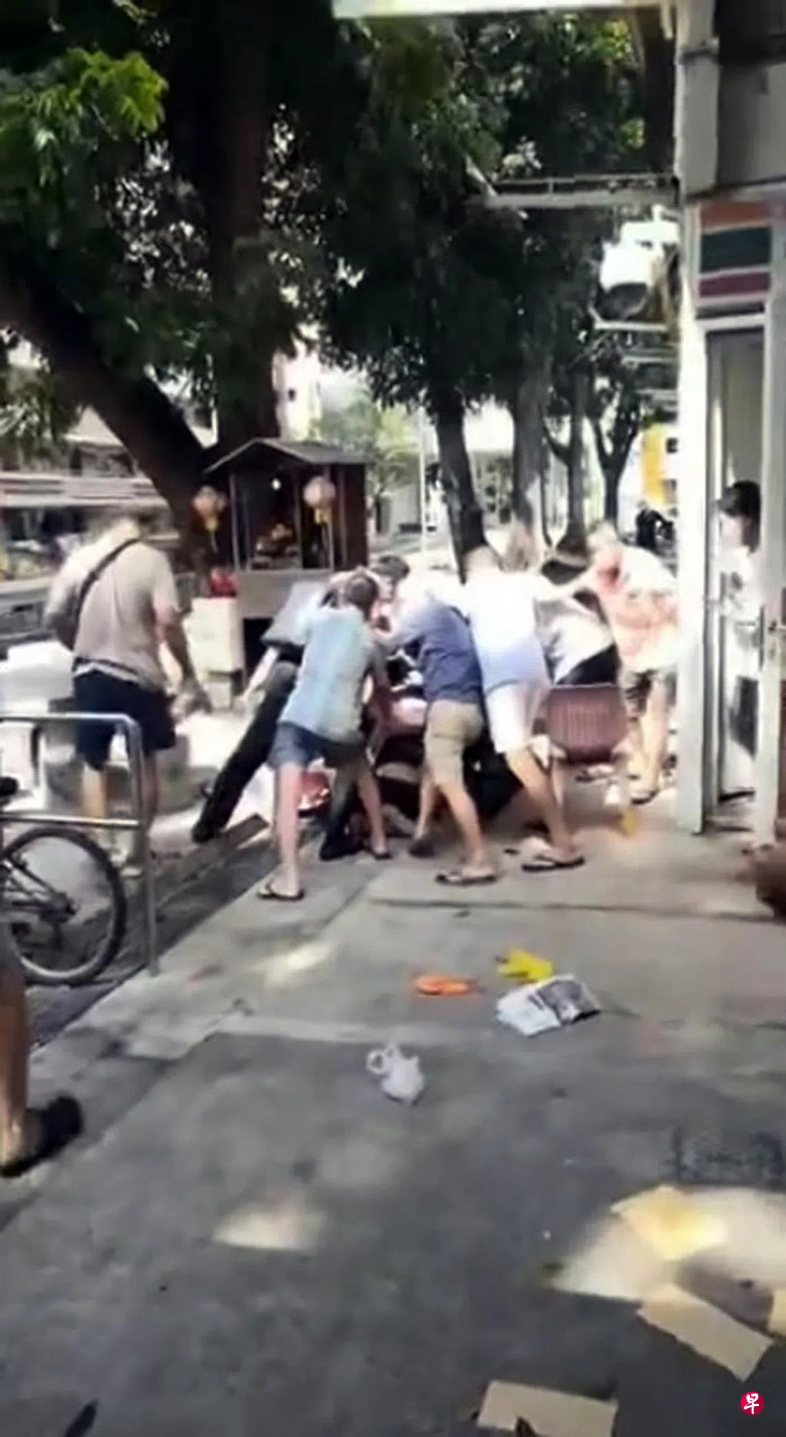 在场的一些公众目击经过,立刻联手利用塑胶椅子做盾牌,将被告压倒在地,直至警方到场。警方早前受询时说,伤者事后被送往医院接受治疗。