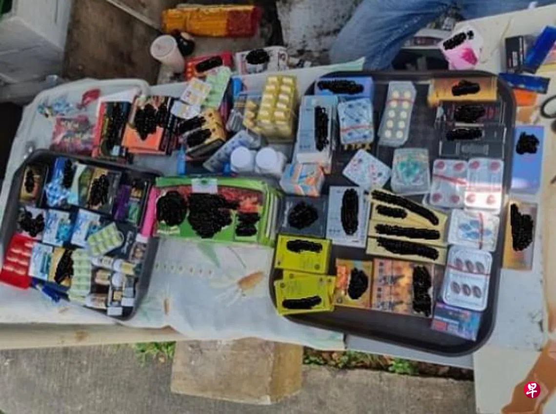 在与卫生科学局、移民与关卡局、中央肃毒局的联合行动中,执法人员起获价值9000元的咳嗽药水和春药,三名涉案男子在医疗保健产品法令下接受调查。