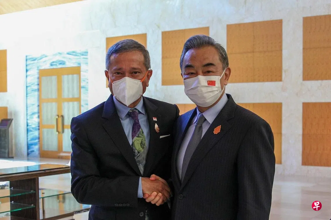 新加坡外交部长维文医生星期五(7月8日)在峇厘岛出席二十国集团(G20)外长会议期间,与中国国务委员兼外交部长王毅会面,双方重申新中以深厚互信为基础的卓越双边关系。