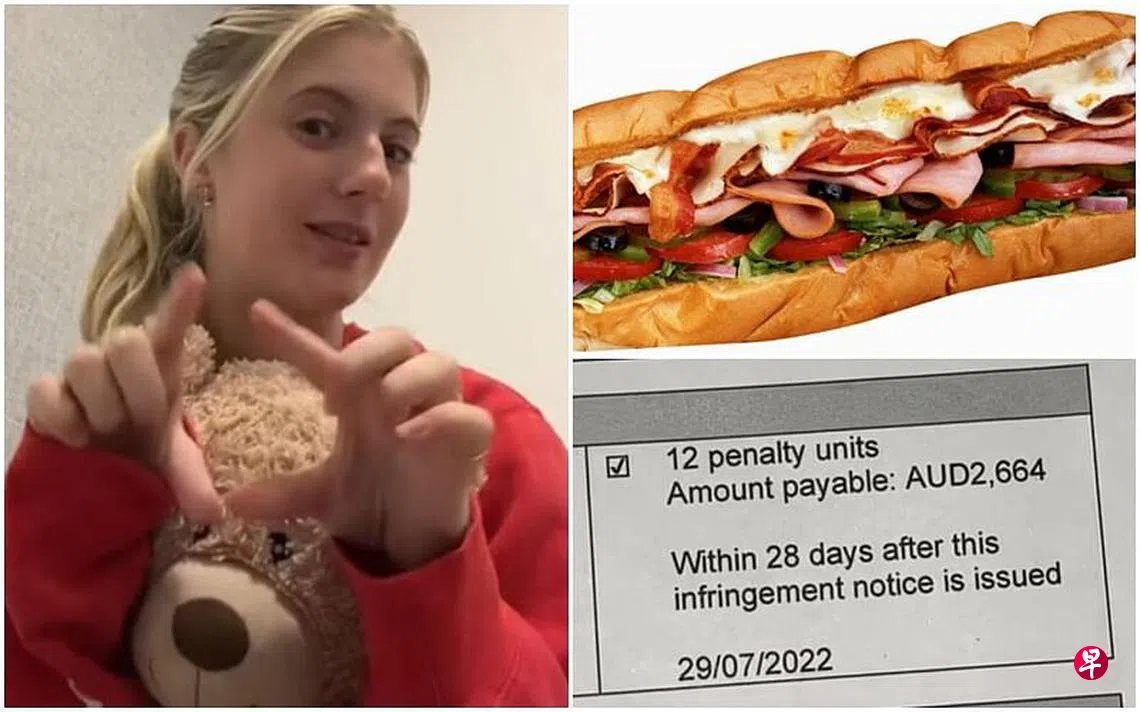 来自澳大利亚珀斯的少女杰西卡·李(Jessica Lee)月初(7月1日)在社交平台TikTok上发布短视频,指她早前搭飞机入境澳洲时,因没有申报她在新加坡转机时购买的一份赛百味(Subway)三文治,结果遭罚款。