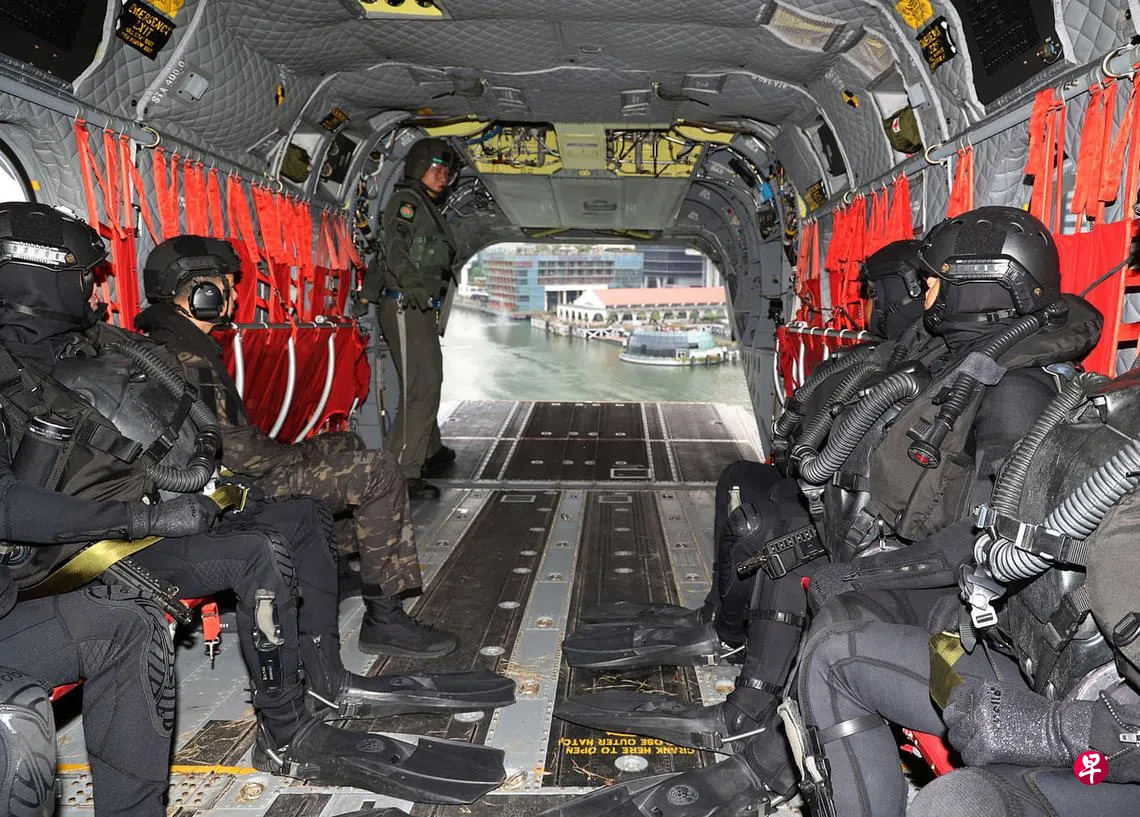 (早报讯)相比开阔的外海,直升机和几艘硬壳充气艇在滨海湾上演“追逐战”,难度更高,演出时每一分每一秒都要精准无误。