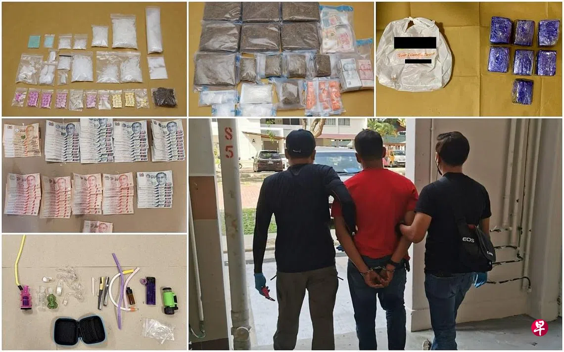 7月19日早上,肃毒人员突击榜鹅苏芒径(Sumang Walk)的一个住宅单位,并逮捕一名涉嫌贩毒的56岁新加坡籍男子,起获约66克海洛因、16克冰毒、多个毒品用具以及4327元现金。