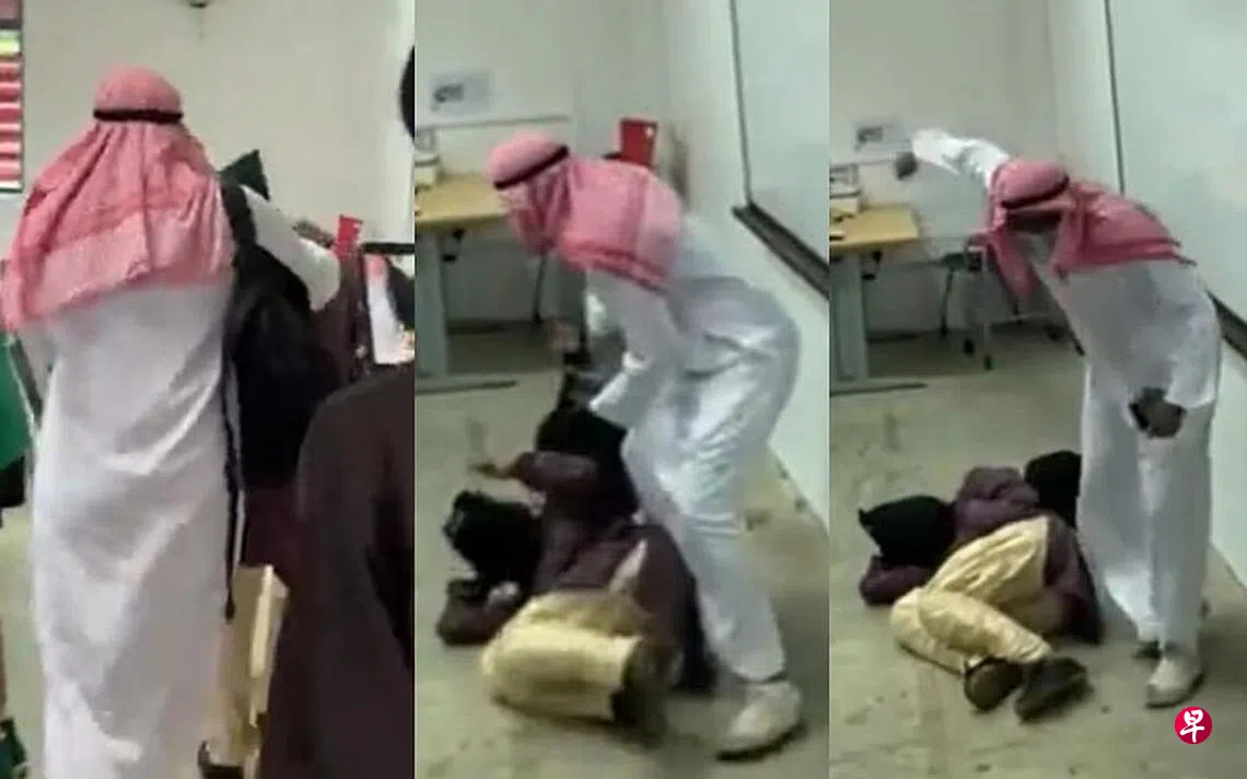 根据社交媒体疯传的28秒视频,这名相信在做出恶搞举动的男生身穿传统的中东服饰,戴着粉色头巾头走进课室,并且将另一名戴着黑色头套的男同学推入课室,要对方跪在地上。