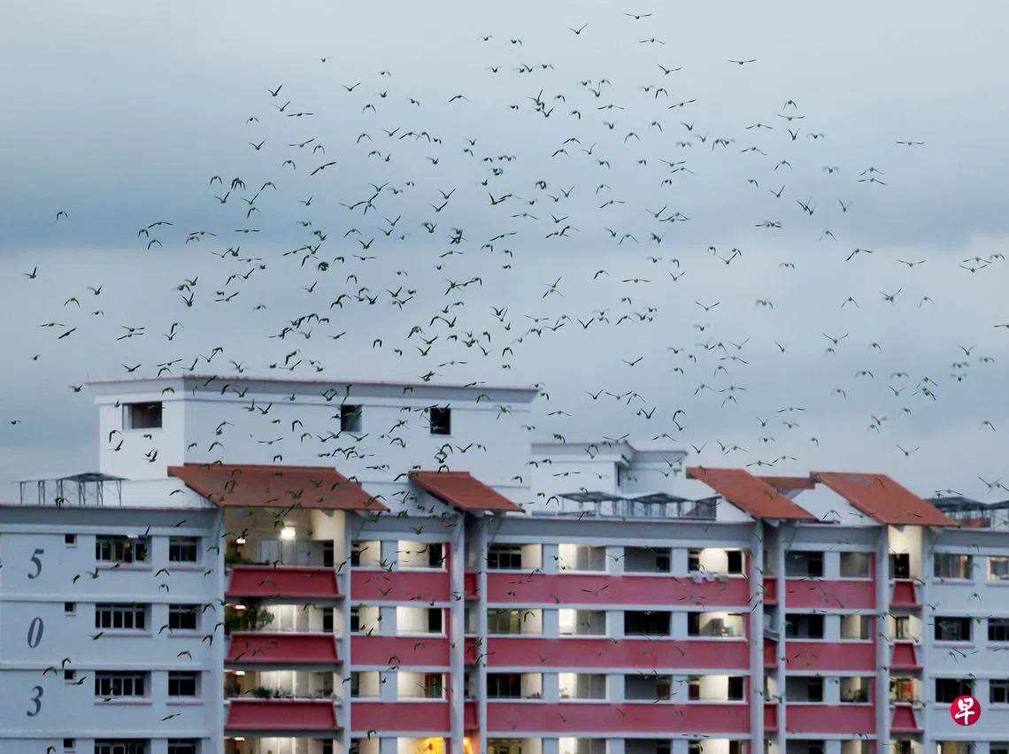近日来,一则视频网上流传,视频可见密密麻麻的小鸟在组屋区的大树间飞舞。