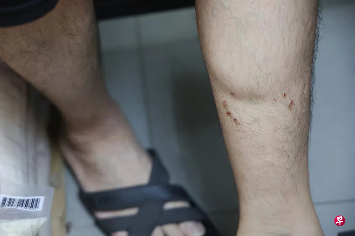 伤者梁锦松(45岁)受访时说,他清晨6时许来到杂货店开门,当时天还没亮,他借着微弱的灯光浇灌植物。忽然左腿传来一阵钻心的疼痛,他本能地跳到一边,隐约间看到一条蛇迅速钻进碎石板下。