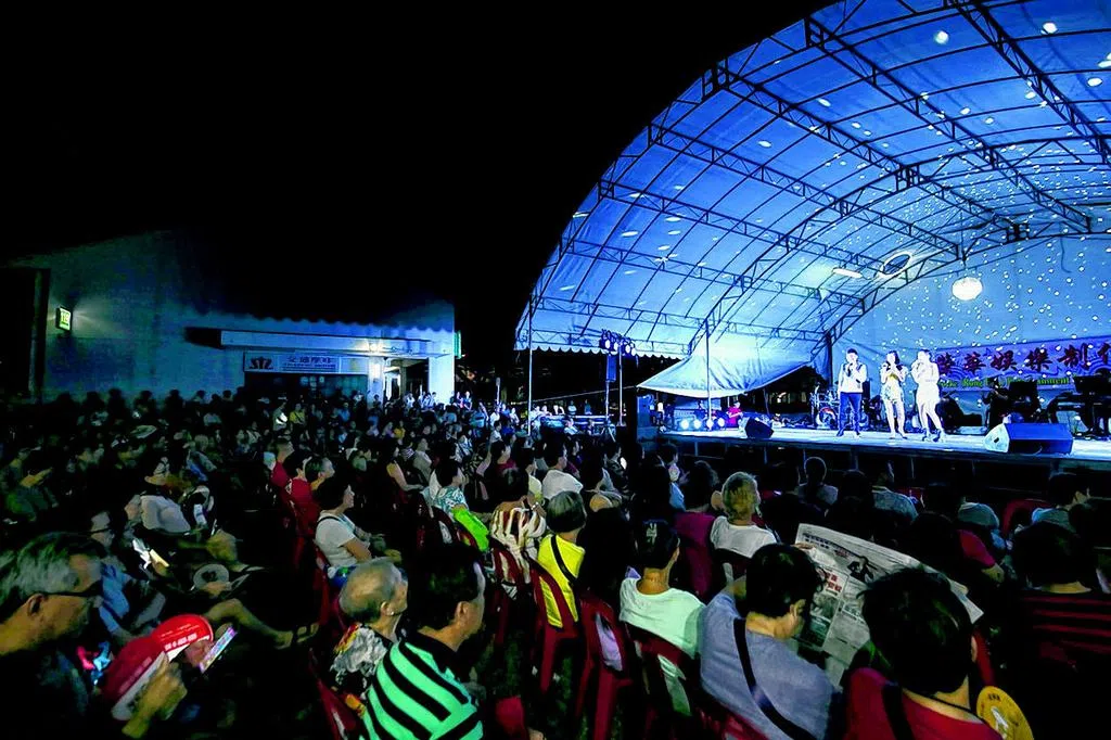 暌违两年,位于大巴窑工业园第1002座的中元会歌台星期四(8月4日)晚上再次举办,由丽星娱乐制作承办,“歌台一姐”刘玲玲等主持,歌星包括林丽影、孙强、陈凯晴、董仕强、林姿逸、袁瑾和黄秀萍,特别来宾则请来了马来西亚唱片红星侯美仪。