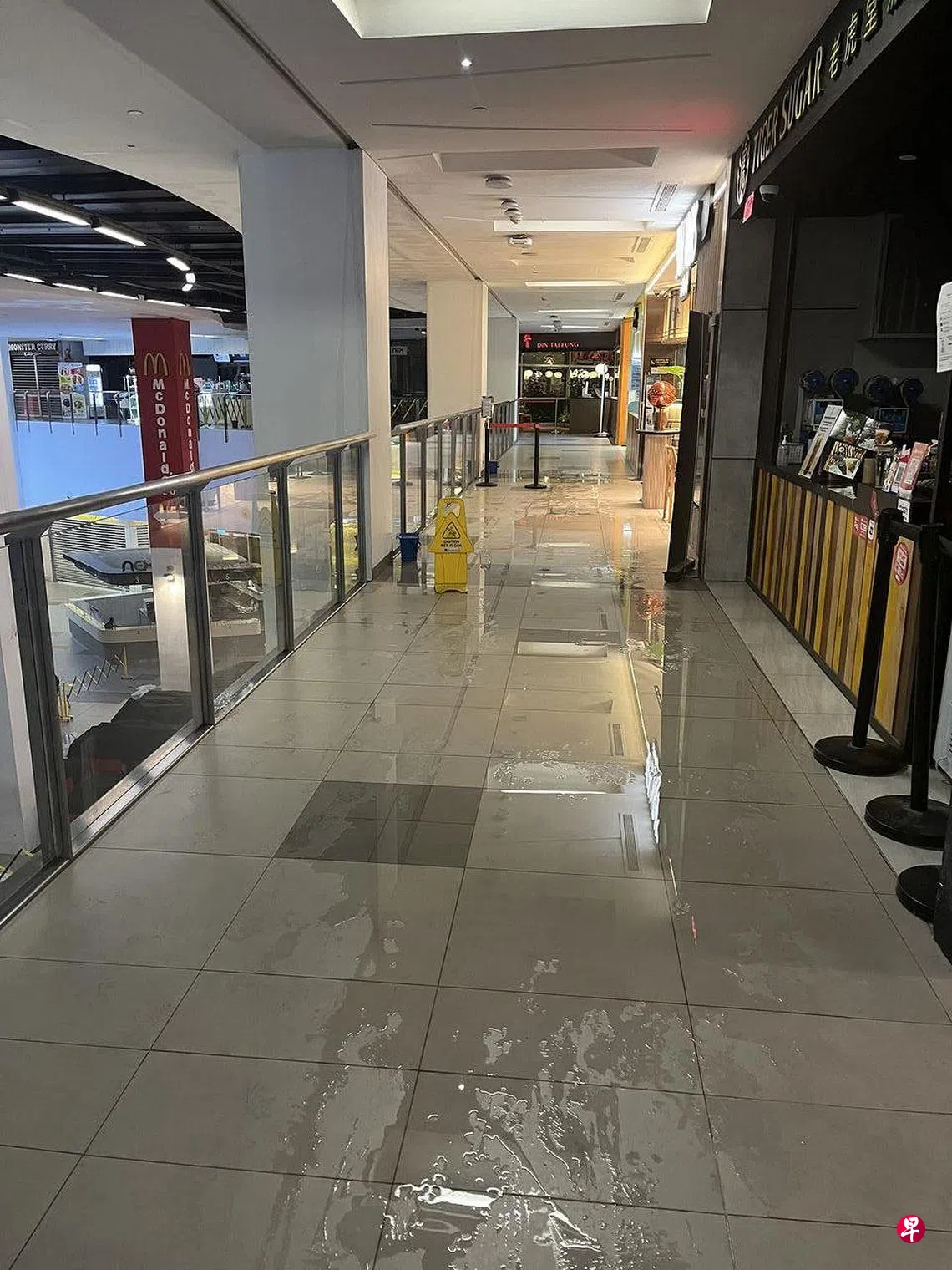 这起漏水事故发生在星期六(8月6日)晚上8时半左右,一名《联合早报》读者星期天凌晨2时许经过事发地点时,看见B1楼层的老虎堂和B2楼层的大食代一带已经围起来,当时地面上仍有大面积积水。