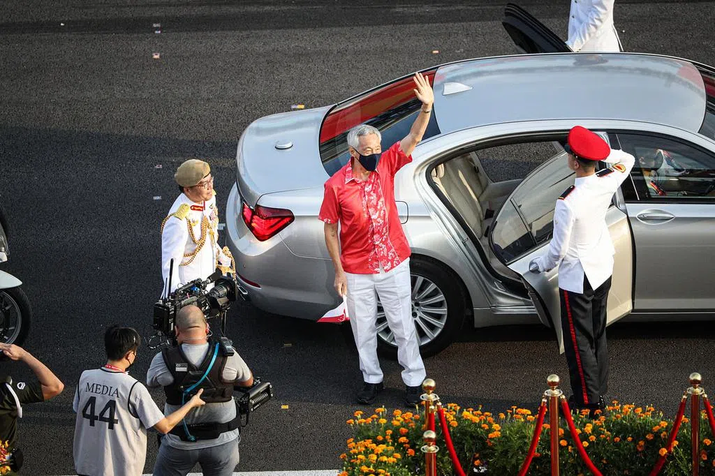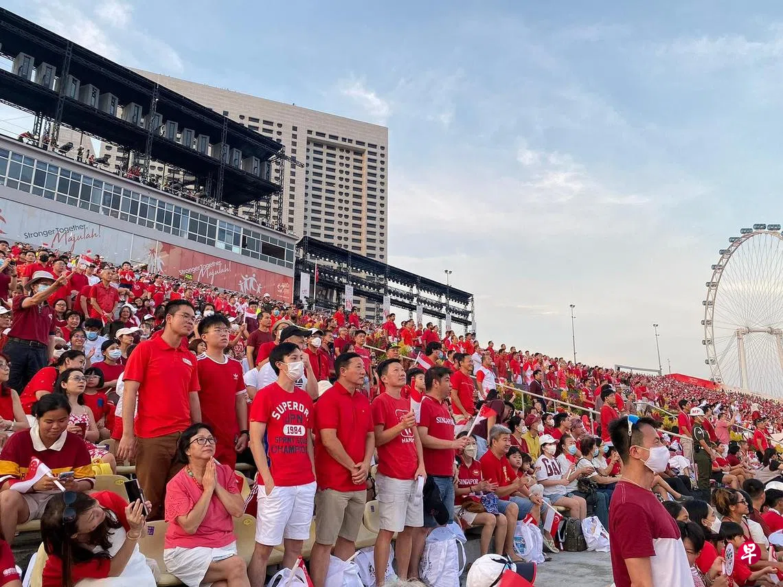 视频播放后,国庆典礼邀请在场的历代国民服役人员起立,接受新加坡人的敬礼。约一半的观众纷纷站起来,当中包括不少女性。