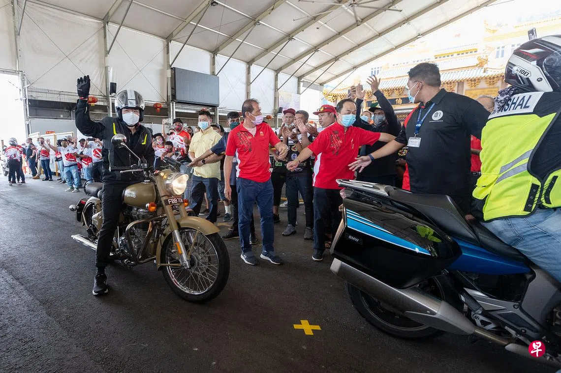 配合国庆日,由电单车爱好者组成的“Riders Aid”团体星期天(8月14日)举办常年慈善骑车活动。800多名骑士下午1时浩浩荡荡从淡滨尼重型车辆停车场出发,一路骑到洛阳大伯公宫。拥有二级电单车执照的活动主宾黄循财在众人瞩目下,骑着皇家恩菲尔德(Royal Enfield)电单车进场。