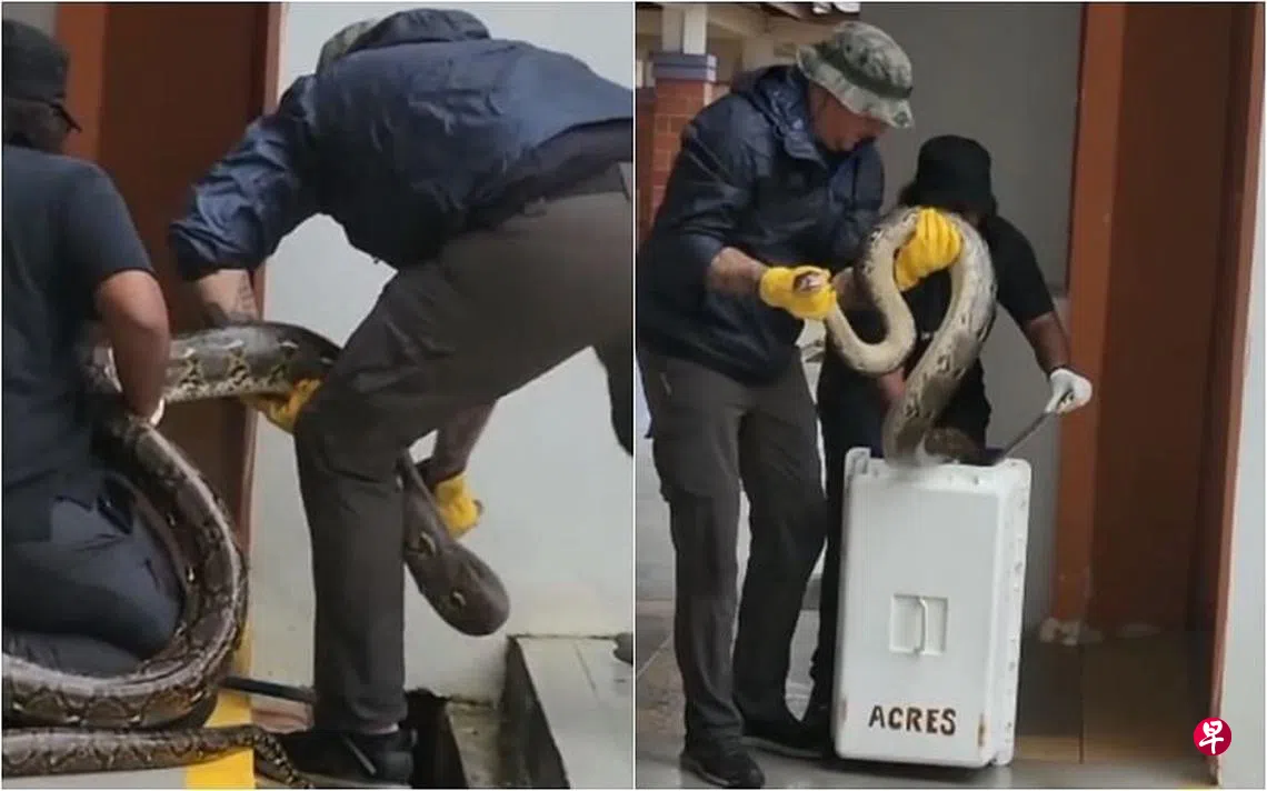 蔡厝港集选区议员、贸工部长颜金勇星期二在面簿上传一段视频,指组屋的沟渠出现蟒蛇,蔡厝港市镇会和关爱动物研究协会联手捕捉蟒蛇。