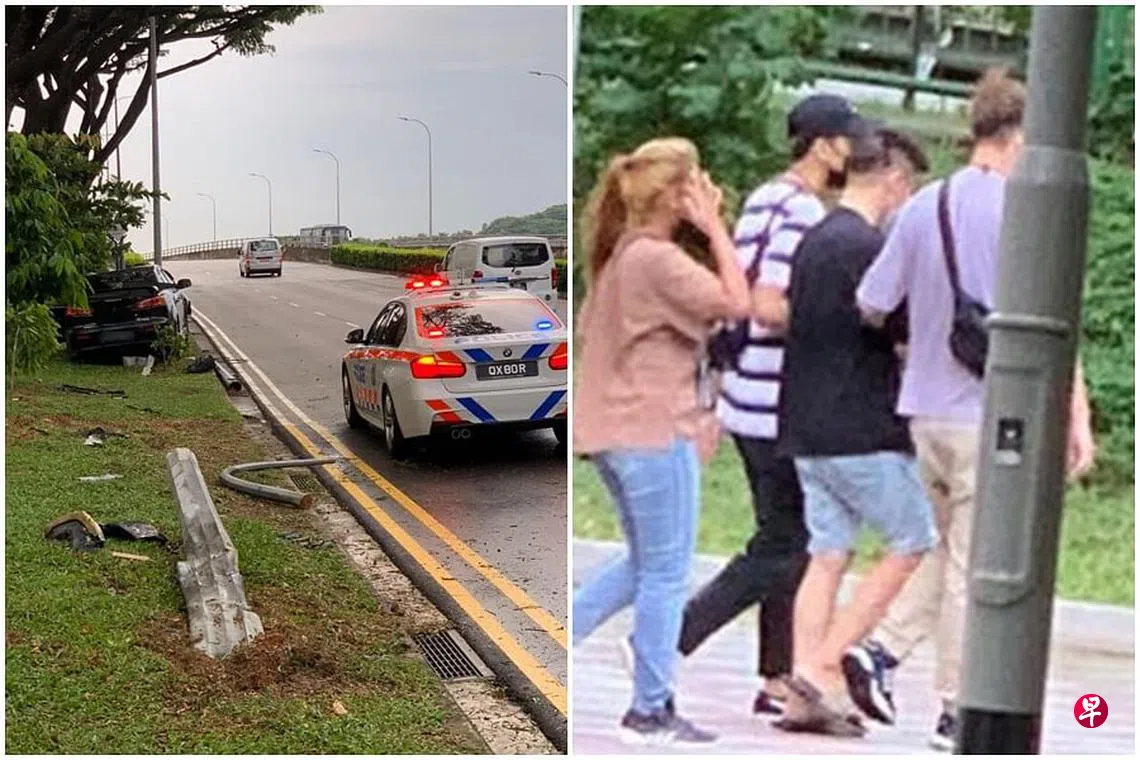 (早报讯)车子失控撞断灯柱,31岁男子因涉嫌吸毒以及无照驾驶被捕。