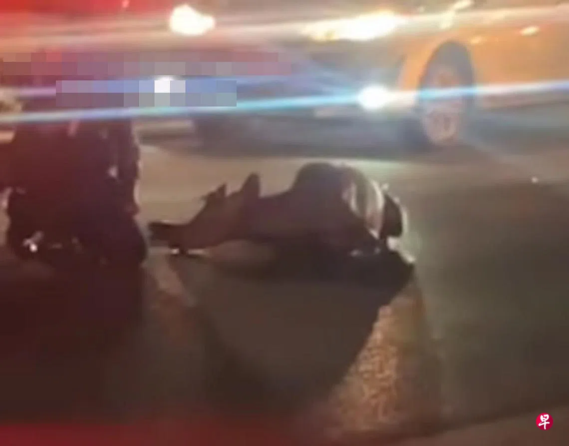面簿专页“新加坡公路意外”星期四晚发布的视频显示,一只水鹿倒在马路中央,附近停着数辆电单车与轿车,交警也赶到现场。