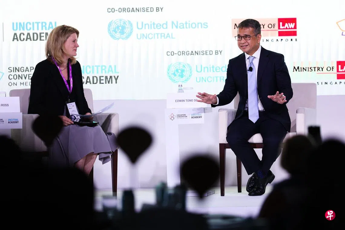 唐振辉在星期二(8月30日)举行的联合国国际贸易法委员会学院(UNCITRAL Academy)大会上参与开场对话时,谈到如何维持新加坡在国际调解和仲裁方面的领先优势。