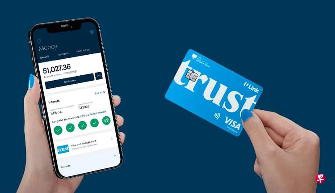 (早报讯)由渣打银行(Standard Chartered)、职总平价集团(Fairprice Group)和职总创优企业合作社(NTUC Enterprise)注资4亿元经营的优信银行(Trust Bank)正式在新加坡登场。优信银行推出的产品包括信用卡、储蓄户头和家庭个人意外保险。