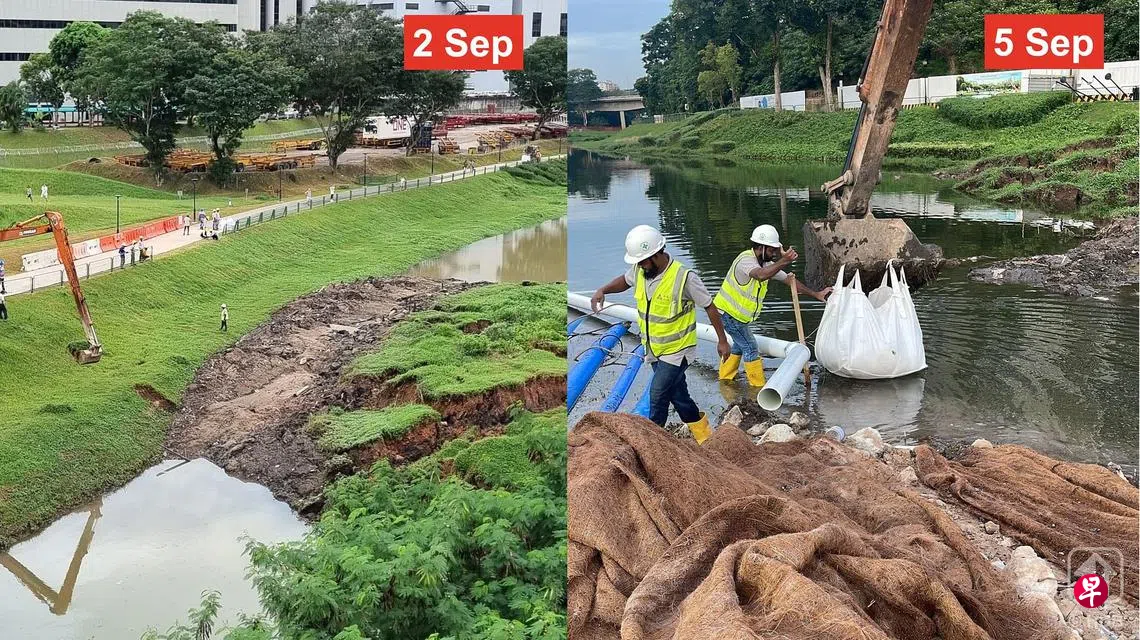建屋发展局星期一(9月5日)晚上在面簿贴文说,在刚过的周末,当局和承包商九鼎工程私人有限公司(Chiu Teng Construction Co. Pte Ltd),在堵住乌鲁班丹河道的部分泥土上凿出一条1.5米宽的水道疏导河水,降低上流河道发生淹水的风险。