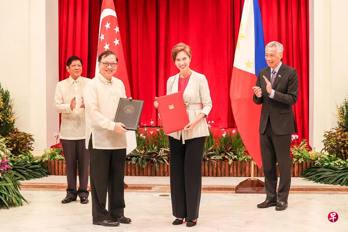 到访我国的菲律宾总统小马可斯,星期三(9月7日)同李显龙总理在总统府见证了这份谅解备忘录以及另五项协议的签署和交换。