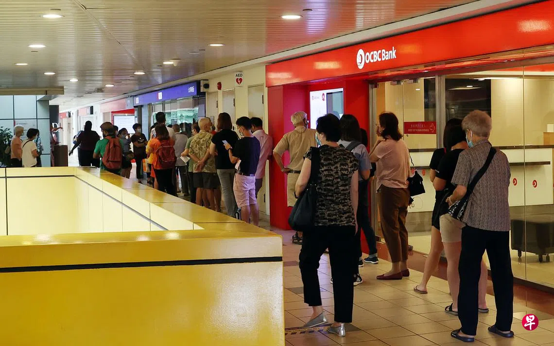 记者星期五(9月9日)走访大巴窑建屋局中心和碧山第8站附近的银行,发现大华银行外排起约20多人的队伍。星展银行、华侨银行、马来亚银行等有约八九人在排队。