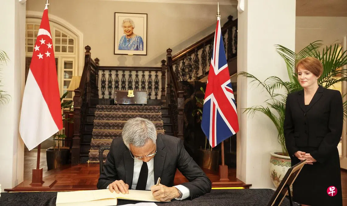 李总理到英国驻新最高专员官邸吊唁英女王(通讯及新闻部提供)(早报讯)英女王伊丽莎白二世逝世,李显龙总理(左)星期五(9月9日)到英国驻新加坡最高专员欧文(Kara Owen,右)的官邸悼念英女王,并在吊唁册上留言。 李显龙伊丽莎白二世上一篇SMRT与五所理工院合作 培养地铁业人才下一篇李总理将出席日本已故前首相安倍晋三国葬仪式购买此文章