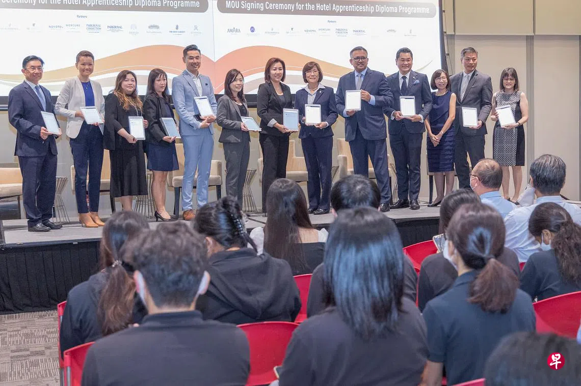 这项新计划是由新加坡酒店协会酒店与旅游管理学院(SHATEC)与本地酒店业者联合推出。学院星期一(9月12日)与全国职工总会就业与培训中心(e2i)及12家酒店签署了谅解备忘录。