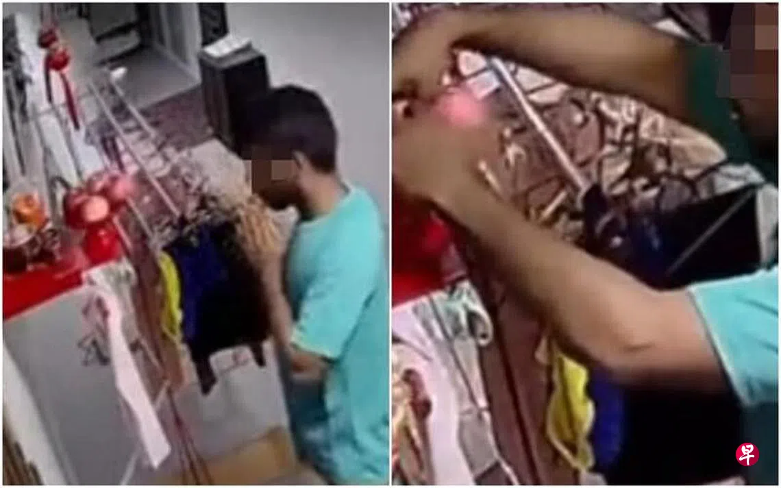 (早报讯)男子路过组屋走廊时,两次双手合十向神台神像拜了拜之后,把供奉的五个苹果全拿走。