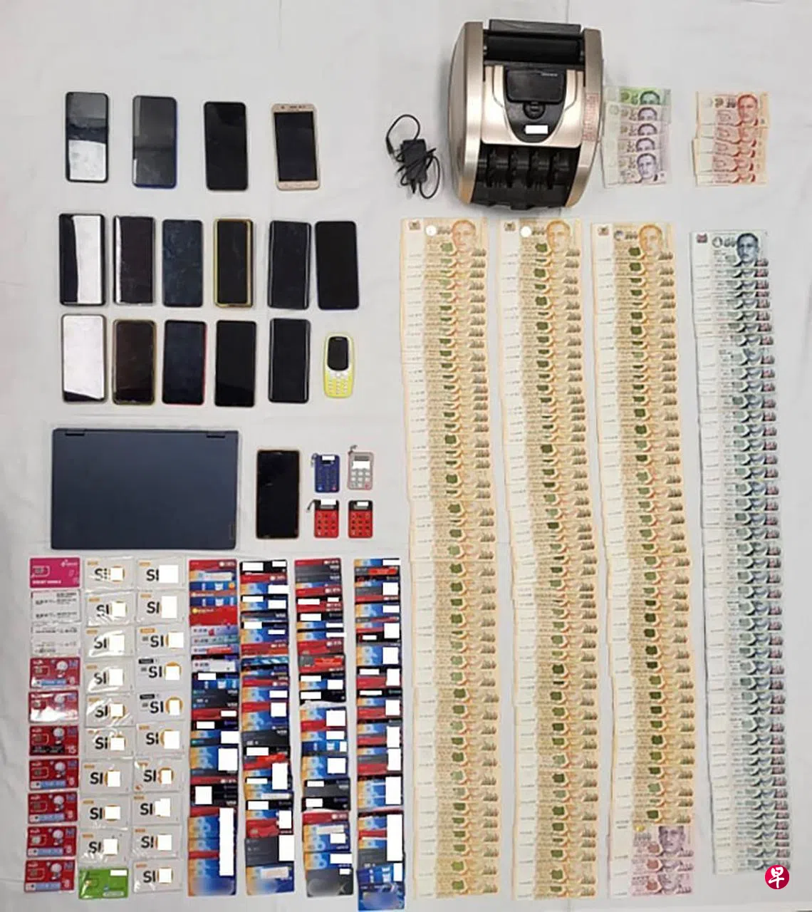 警方也在行动中起获1万9000多元的现金、16台手机、30多张预付SIM卡,及150张提款卡。