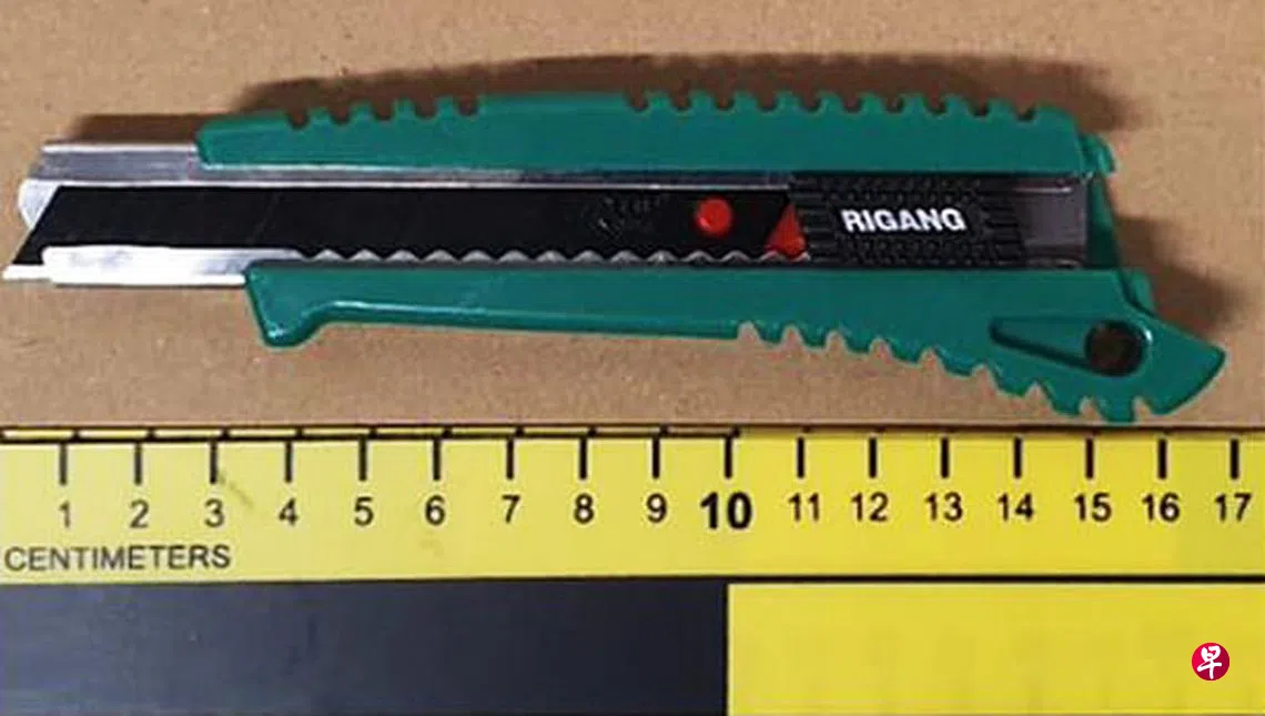 警员根据伤者和一名目击者的描述,在德士站附近发现并逮捕一名50岁男嫌犯,从他的身上起获一把长15公分的美工刀做为案件证物。初步调查显示,嫌犯与伤者不认识。