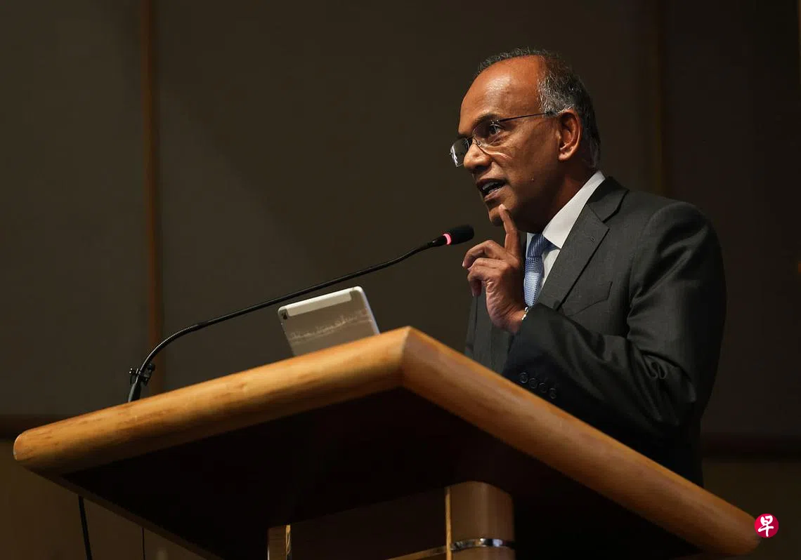内政部长兼律政部长尚穆根星期一(9月26日)下午出席一场有关第377A节条文的法律论坛时说,从上诉庭今年驳回退休医生陈生枝等三人挑战第377A节条文一案的书面判决中可看出,第377A节条文如果日后再次根据宪法第12条文而遭到挑战,有可能被法庭裁定为违宪。