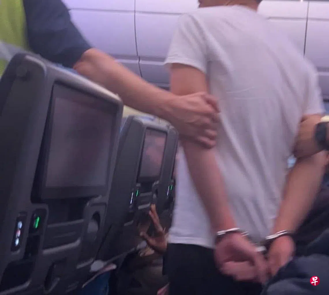 谎称手提行李内藏有炸弹的美国籍男乘客,随后被逮捕。