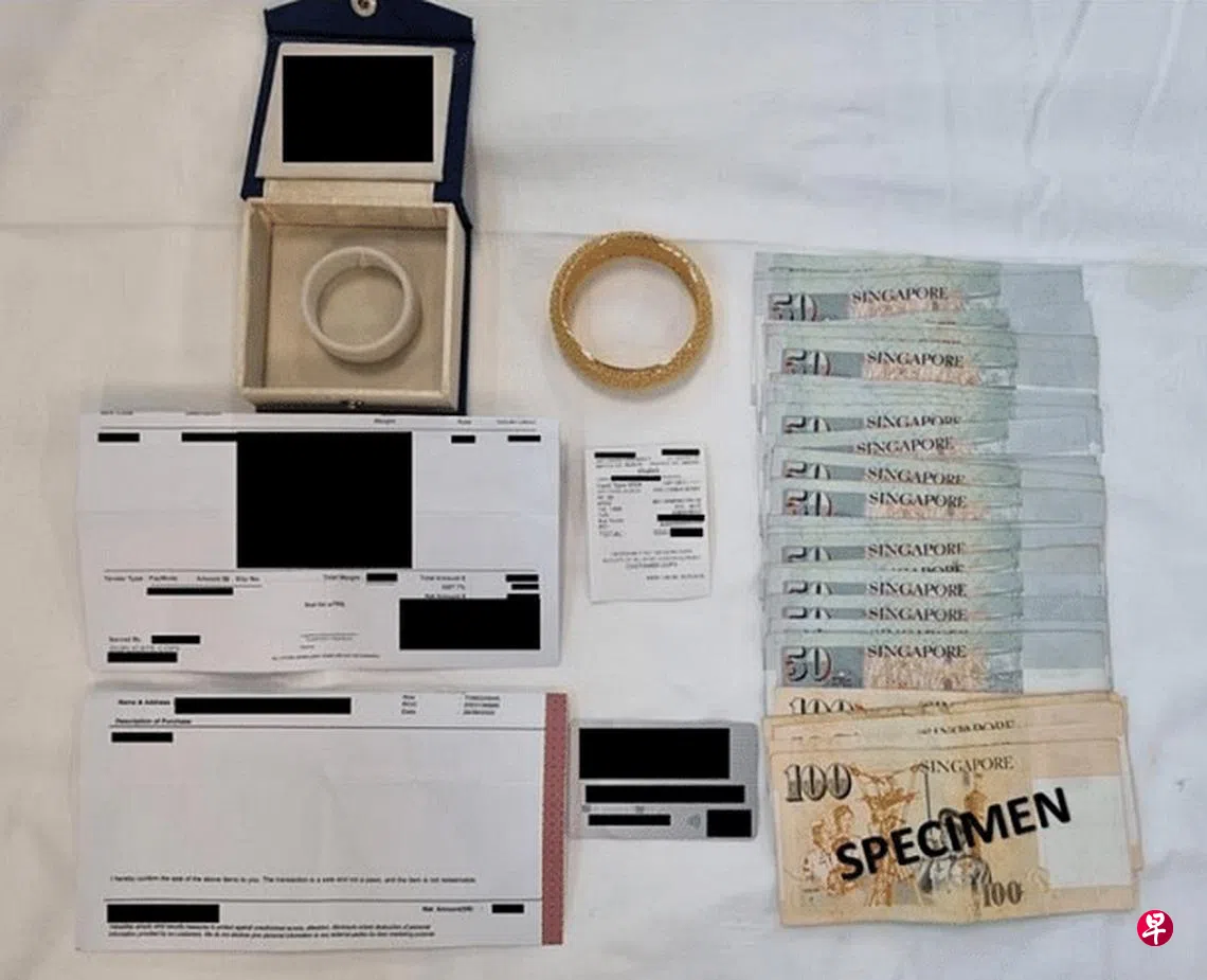 警方在行动中起获了当票、收据、被盗刷的信用卡,及一只相信是用受害者信用卡购买的手镯。