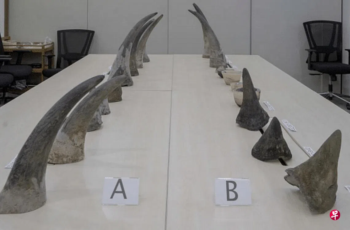 (早报讯)国家公园局在机场查获20个市价约120万新元的犀牛角,这也是本地至今起获最多犀牛角的走私案。