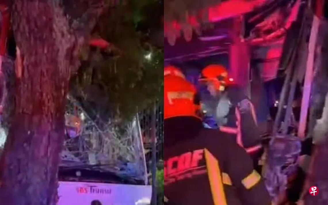 网上流传的视频和照片显示,一辆新捷运巴士迎头撞上大树,巨大撞击力导致车镜爆裂、保险杠脱落,侧门更被撞至变形。不少民防部队人员在草丛走动准备救援。