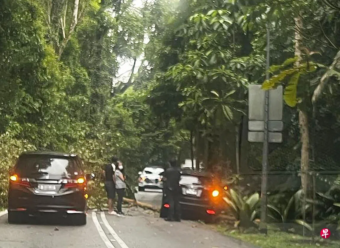 《新明日报》接获通知,因为树冠断裂挡在路中央,所以上述路段当时无法通行。