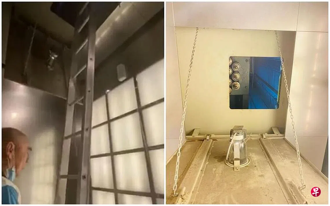 根据焦女士的绘述,一家三口受困时,电梯里的灯是亮着的,新加坡民防部队人员到场后,打开位于电梯顶部的舱口,降下梯子让三人爬出电梯。