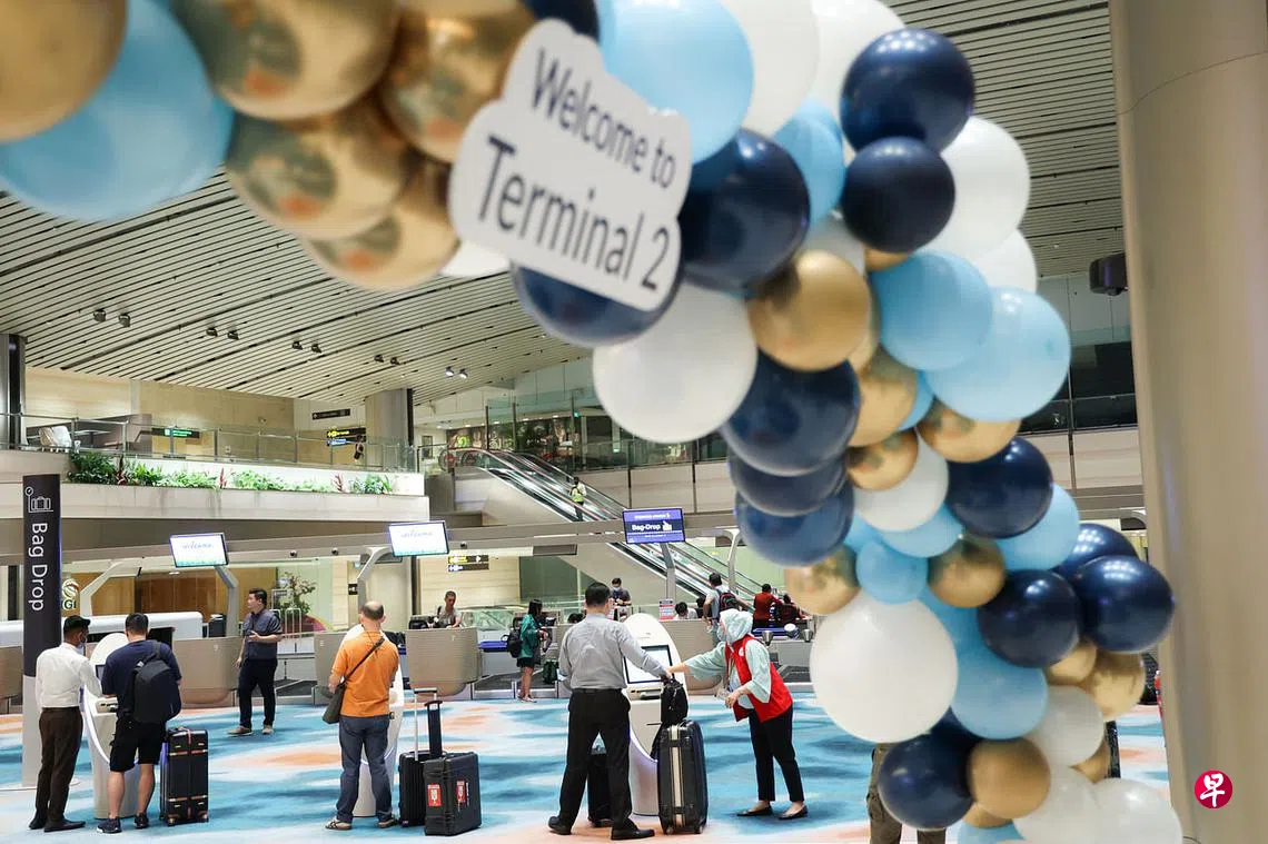 (早报讯)樟宜机场第二搭客大厦(T2)南侧离境厅重开,这意味着樟宜机场的四个搭客大厦都重新投入运作。首日共有17趟飞往马来西亚和泰国的新加坡航空公司航班从T2南侧离境厅起飞,乘客人数约3000名。