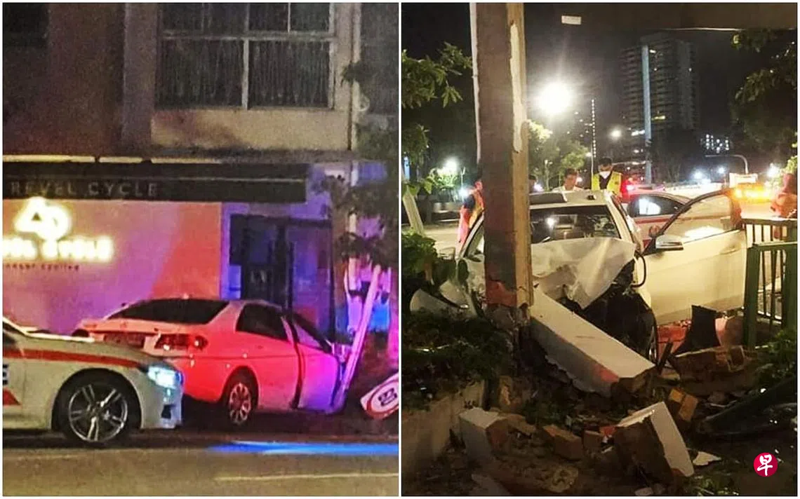 民防部队答复《联合早报》时说,他们在约凌晨1时45分接获车祸通报,一人受轻伤但拒绝送院。