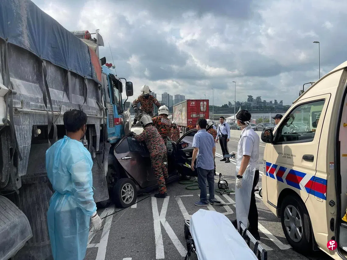 (早报讯)新柔关卡恐怖车祸,男乘客困车内半小时,头部受创、肋骨骨折,受访时说:“感觉从鬼门关转了一圈。”