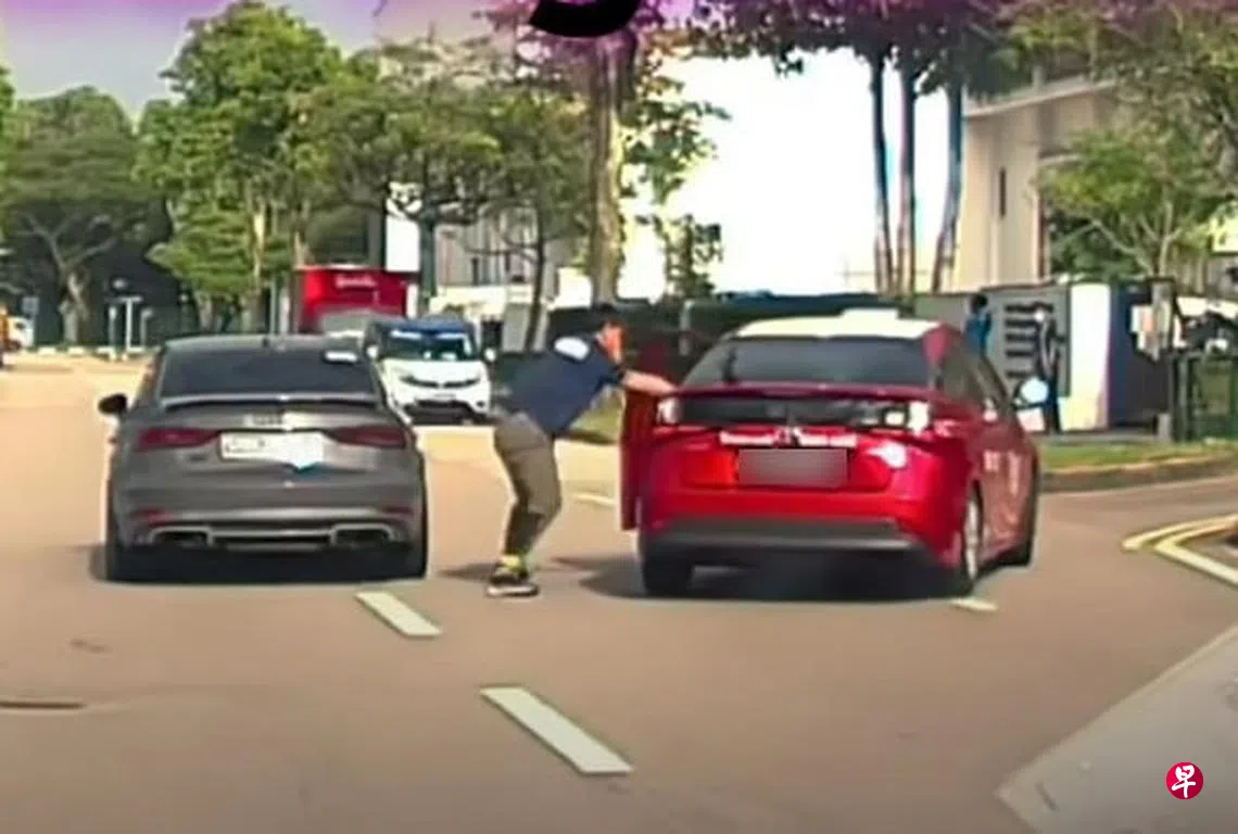 (早报讯)不满德士切入车道,驾驶奥迪的男子两次鲁莽超车拦截,还下车质问德士司机,星期四(10月20日)被判坐牢四天,各级驾照吊销四个月。