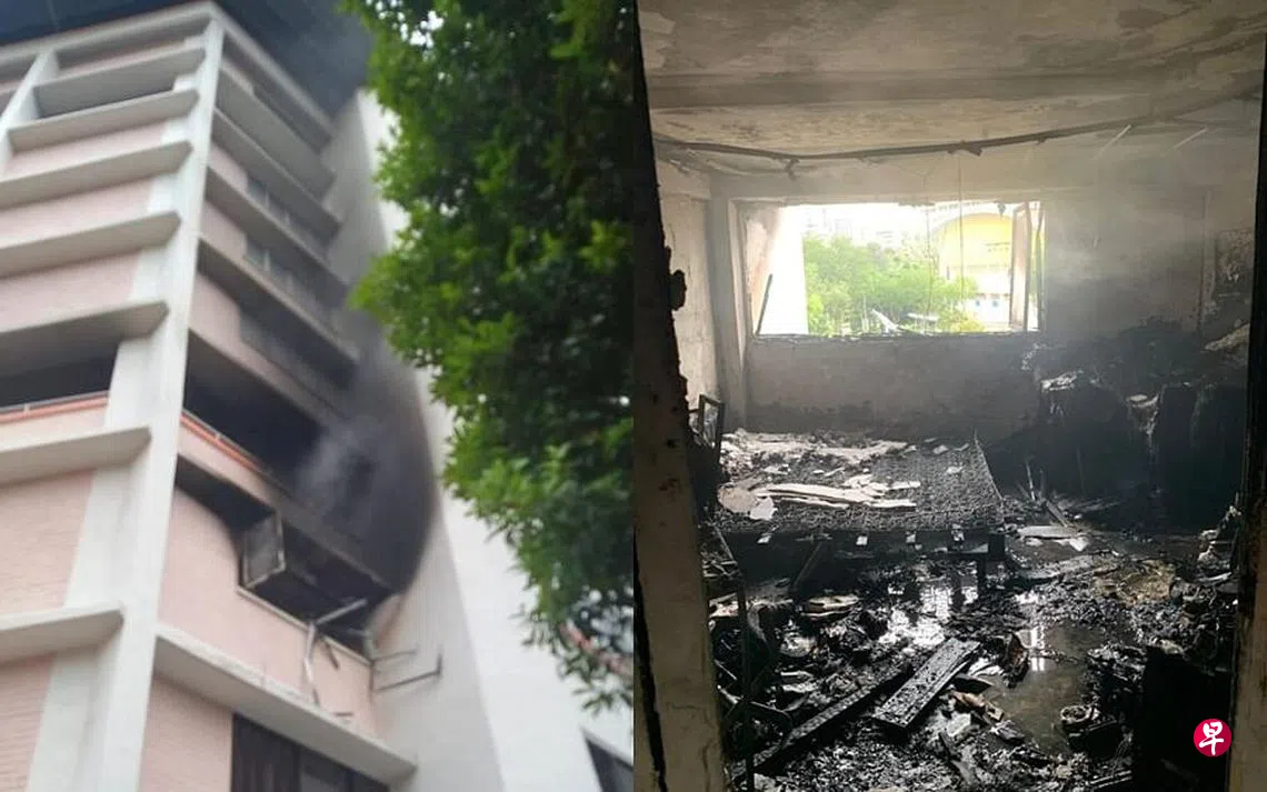 根据民防部队在脸书上载的照片,火患发生时,浓浓黑烟从失火单位的窗口冒出,窗户玻璃因高温而爆裂。火势扑灭后,房间里的物品已被烧得面目全非。