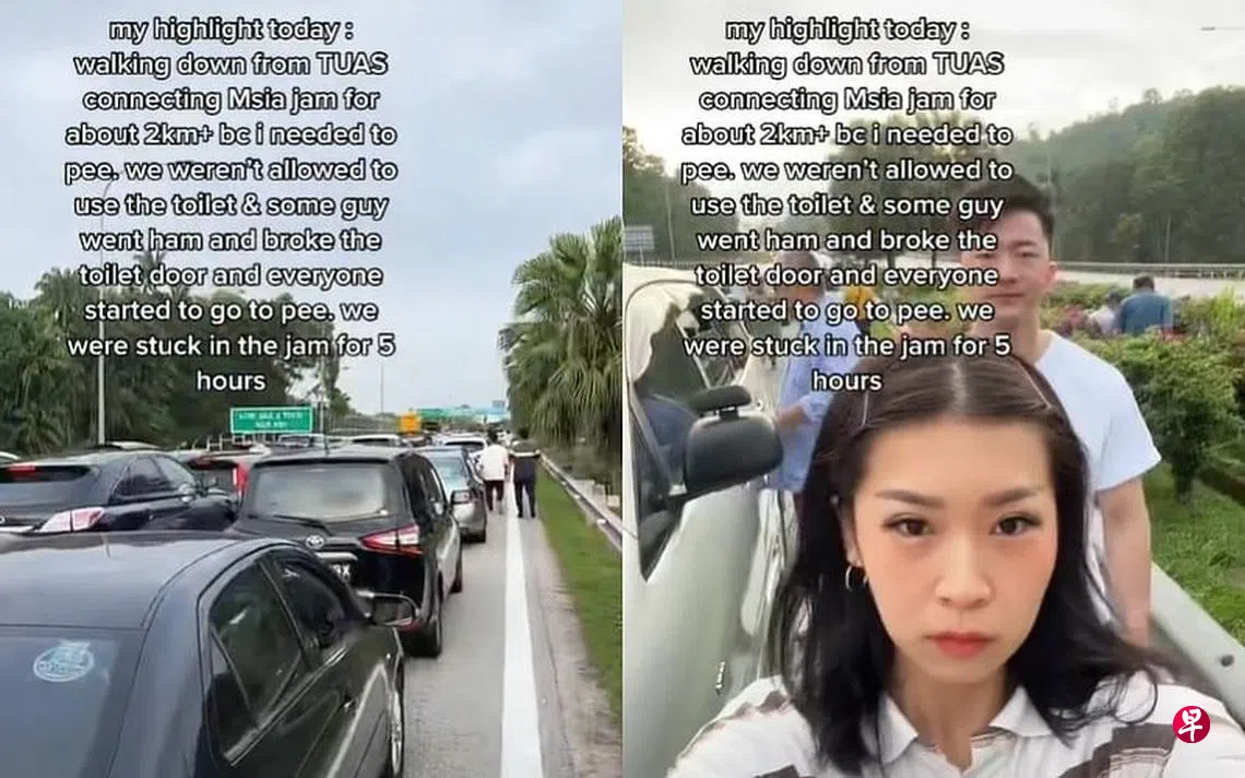 (早报讯)长周末到马来西亚游玩,狮城女关卡塞车五小时,途中人有三急,只能徒步走两公里找厕所。