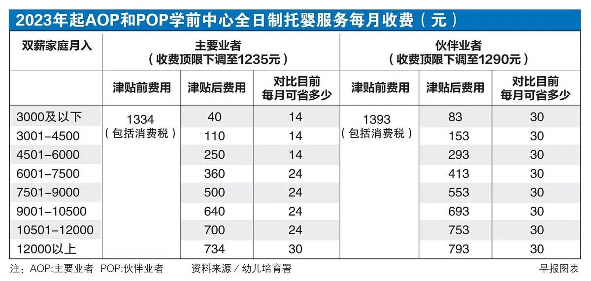 新收费顶限实施后,以全日制托儿服务来说,主要业者(Anchor Operator)和伙伴业者(Partner Operator)学前中心的最高收费,将分别降低至680元和720元;全天托婴服务方面,收费顶限则分别减至1235元和1290元。